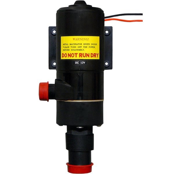 Fekální pumpa. Nerezový nůž uvnitř pumpy rozemílá odpad během čerpání.