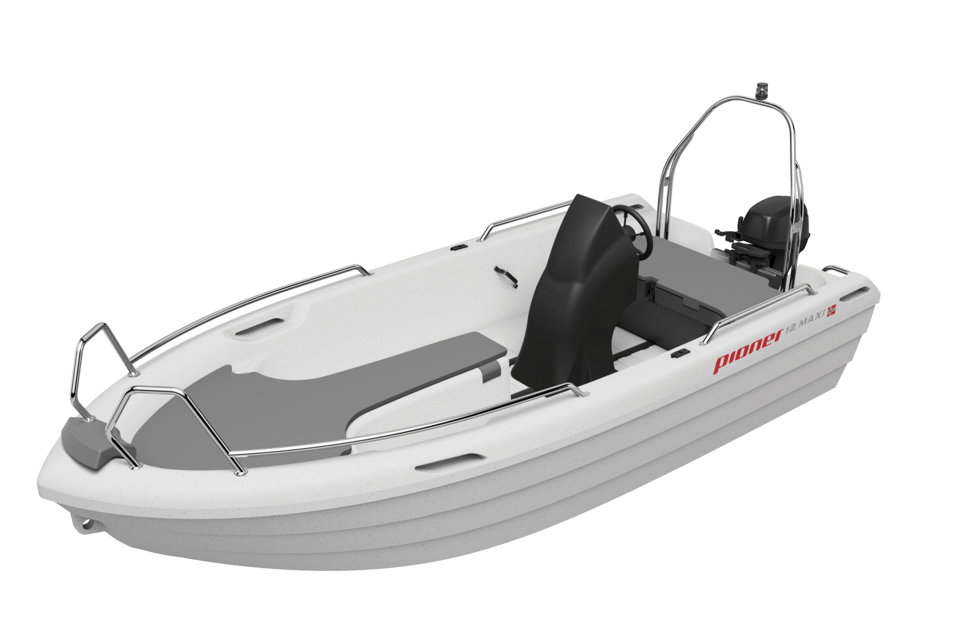 Nový Pioner 12 Maxi je moderní a bezpečná víceúčelová loď. Je samovylévací, snadno ovladatelný, velmi pevný a stabilní. Společnost Pioner je lídrem na trhu v oblasti rotačního lisování a s novým modelem Pioner 12 Maxi posunula tento proces lisování do nových výšin. Díky dvojitému trupu je loď extrémně bezpečná a díky plnému kontaktu mezi palubou a trupem je loď tužší a robustnější. S minimální údržbou a konstrukcí pro dlouhou životnost je to perfektní loď pro všechny majitele lodí.