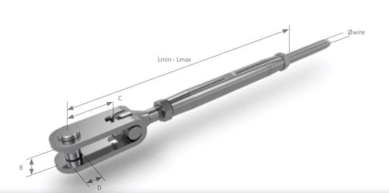 Napínak so závit term.M8,lano 4mm,očko term.toggle
