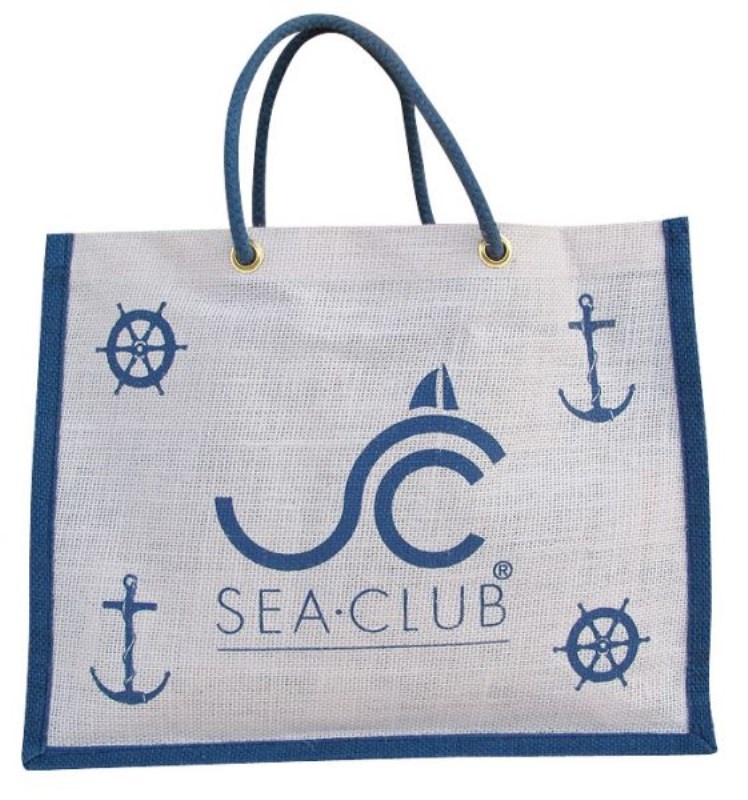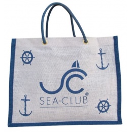 Taška jutová bielo-modrá, 36x28x12cm